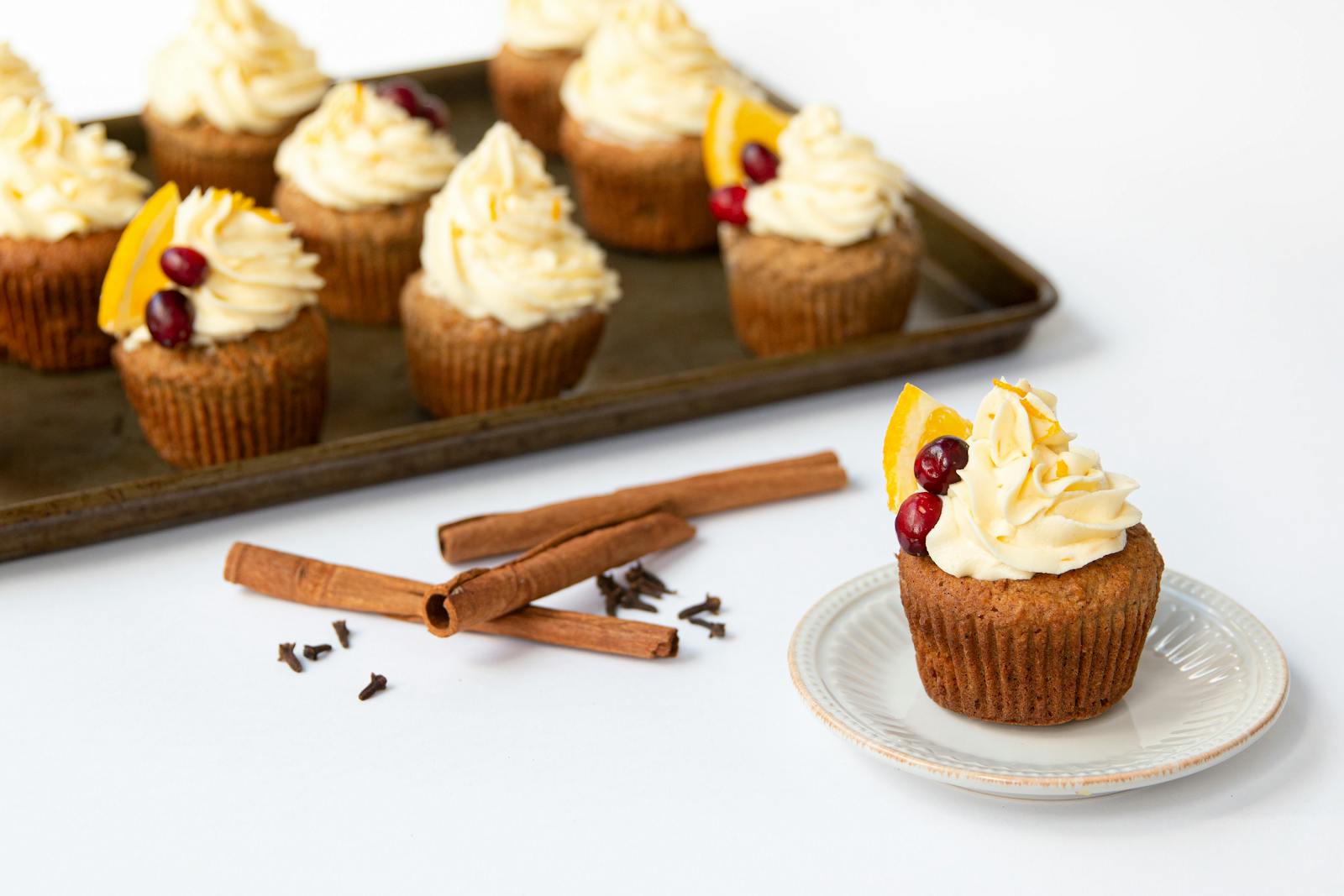 #Orange | If Christmas has a smell, this is it! Cinnamon, cardamom, ginger, and clove come together in this lightly sweet cupcake topped with an orange infused buttercream frosting. The warm aromas will great your family and friends like a welcoming hug.